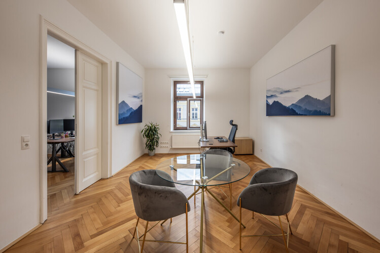 Dieses vollständig renovierte Stadtbüro im 3. Obergeschoss eines eleganten Innsbrucker Stadthauses (mit Lift) überzeugt durch seine großzügige Raumaufteilung, hochwertige Ausstattung und die zentrale Lage in der Innenstadt.