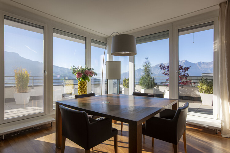 Diese exklusive 4-Zimmer-Penthouse-Wohnung in ruhiger Aussichtslage bietet Wohnkomfort auf höchstem Niveau. Mit einer großzügigen Wohnfläche von 140 m² und einer umlaufenden Terrasse genießen Sie den ganzen Tag über Sonne und einen spektakulären Blick auf die umliegende Bergwelt.