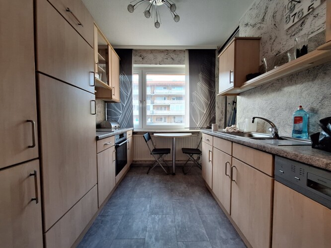 Die komplett sanierte Wohnung verfügt über 3 Zimmer, darunter 2 geräumige Schlafzimmer, die Ruhe und Erholung garantieren und ein Wohnzimmer mit einem Kamin. Das moderne Badezimmer ist stilvoll gestaltet und wie auch die restliche Wohnung 2024-25 komplett saniert worden.