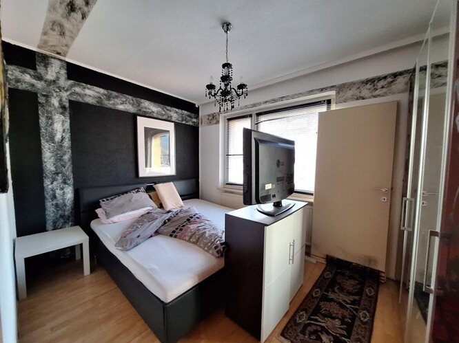 Die komplett sanierte Wohnung verfügt über 3 Zimmer, darunter 2 geräumige Schlafzimmer, die Ruhe und Erholung garantieren und ein Wohnzimmer mit einem Kamin. Das moderne Badezimmer ist stilvoll gestaltet und wie auch die restliche Wohnung 2024-25 komplett saniert worden.