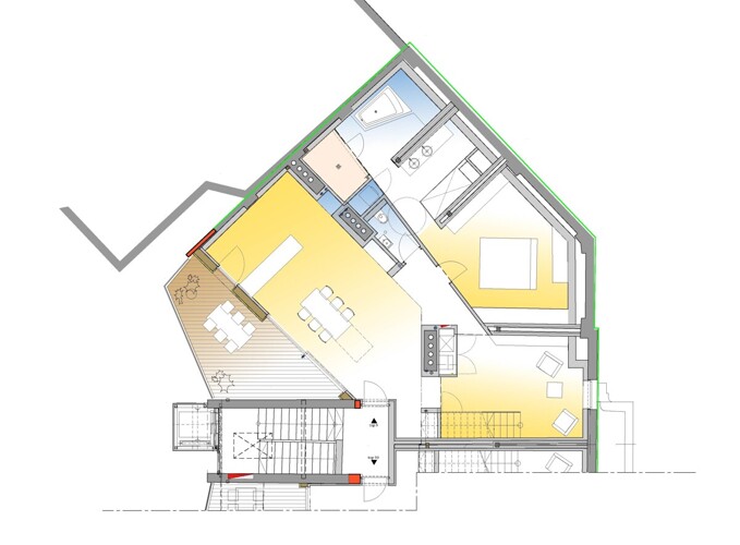 Inmitten des Innsbrucker Zentrums, in der Colingasse 10, wurde das Gründerzeithaus aus dem Jahre 1881 um einen zweistöckigen Dachgeschoßausbau erweitert. Stilvoll erstreckt sich die Wohnung über zwei Etagen.