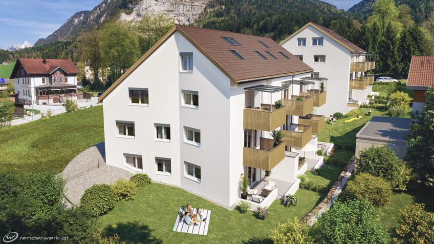 Modernes Wohnen: In Bad Häring entstanden 18 Wohnungen verteilt auf zwei Baukörper mit verschiedenen Einheiten von der Zwei-Zimmer-Single- bis zur Vier-Zimmer-Familien-Wohnung. Angesiedelt in einer ruhigen, familienfreundlichen und zentralen Wohngegend.